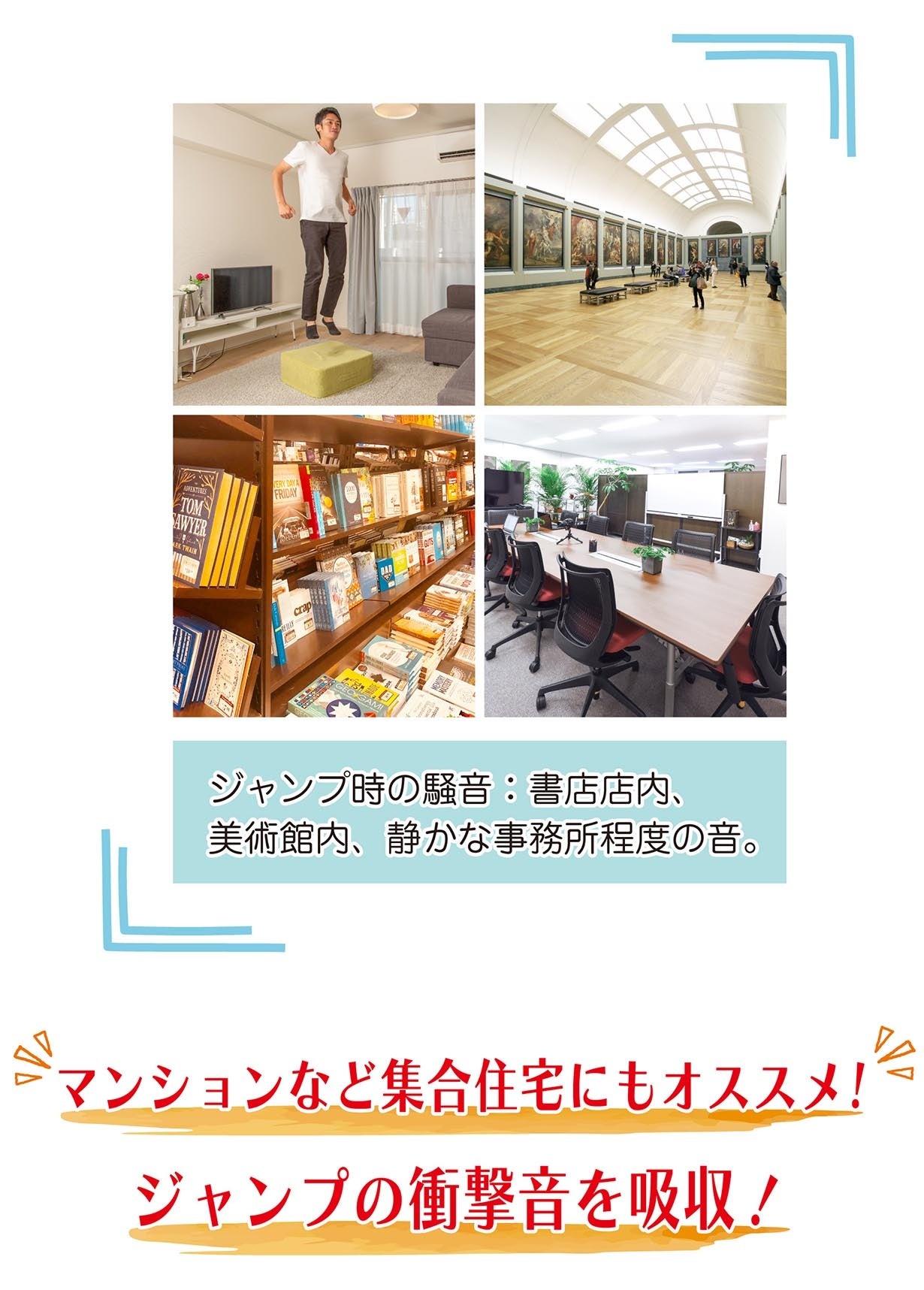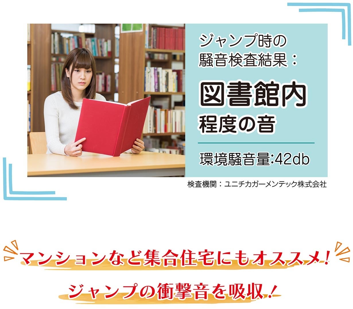 ・ISSENO!オリジナル4層構造によって、跳ねた時の音も吸収してくれるので、マンションなどの集合住宅にもオススメです。お子さまの有り余る体力発散にもお役立てください。