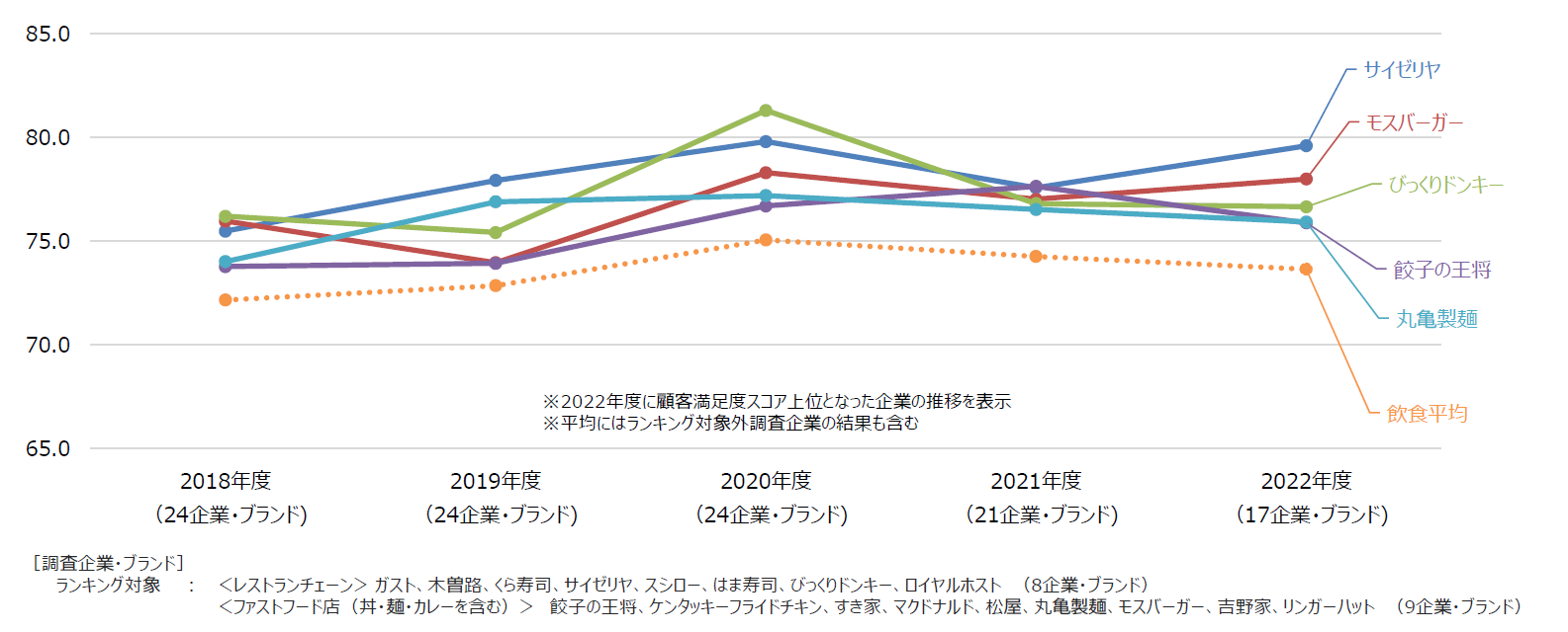 - ※各業種のランキング対象企業のうち、原則として中央値以上の企業・ブランドを表示
