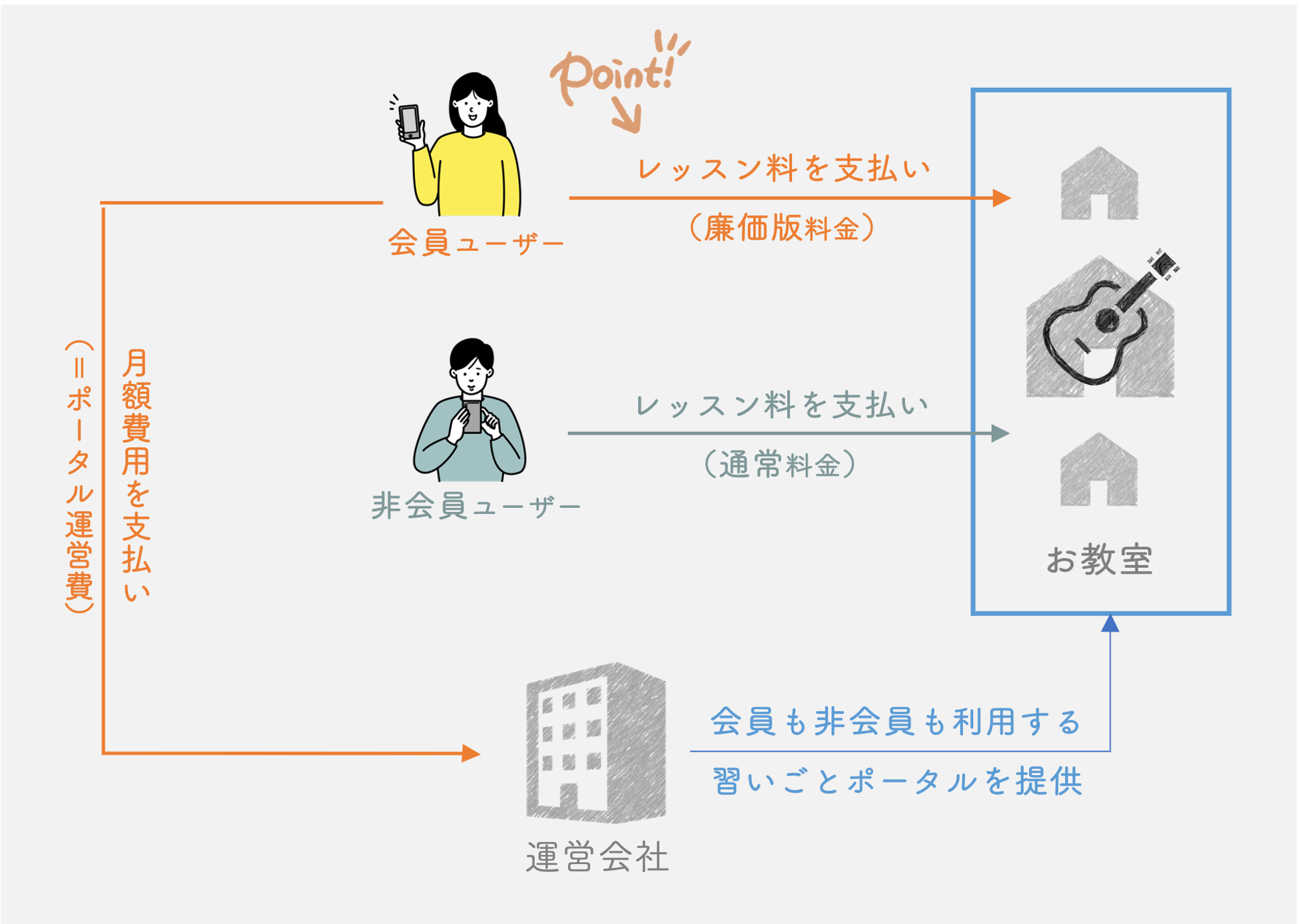 ・生徒様から支払われる都度払い料金も、お教室様が100%お受け取りいただけます。