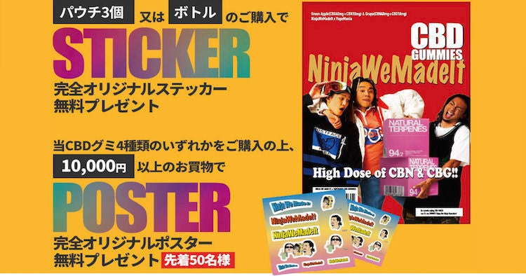 Ninja We Made It. x VapeMania CBDグミをご購入の方へ限定プレゼントのご案内。