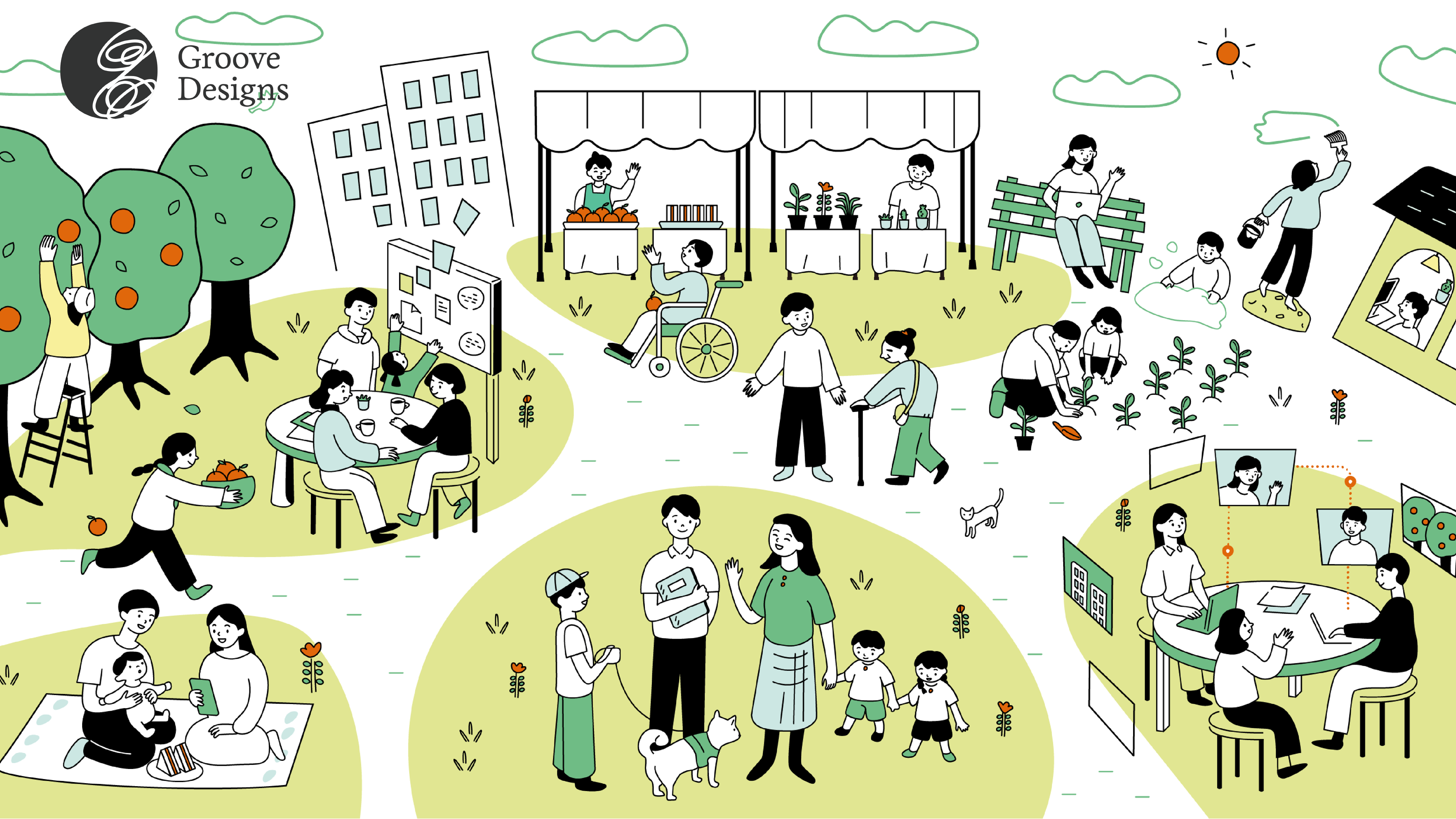 Groove Designsは、人とまちの新しい関わり方をデザインしています。 都市空間、コミュニティ、デジタルサービスのデザインなどを通じて、まちに暮らす一人ひとりが当事者となり、幸せと誇りを実感できるまちづくりを目指します。