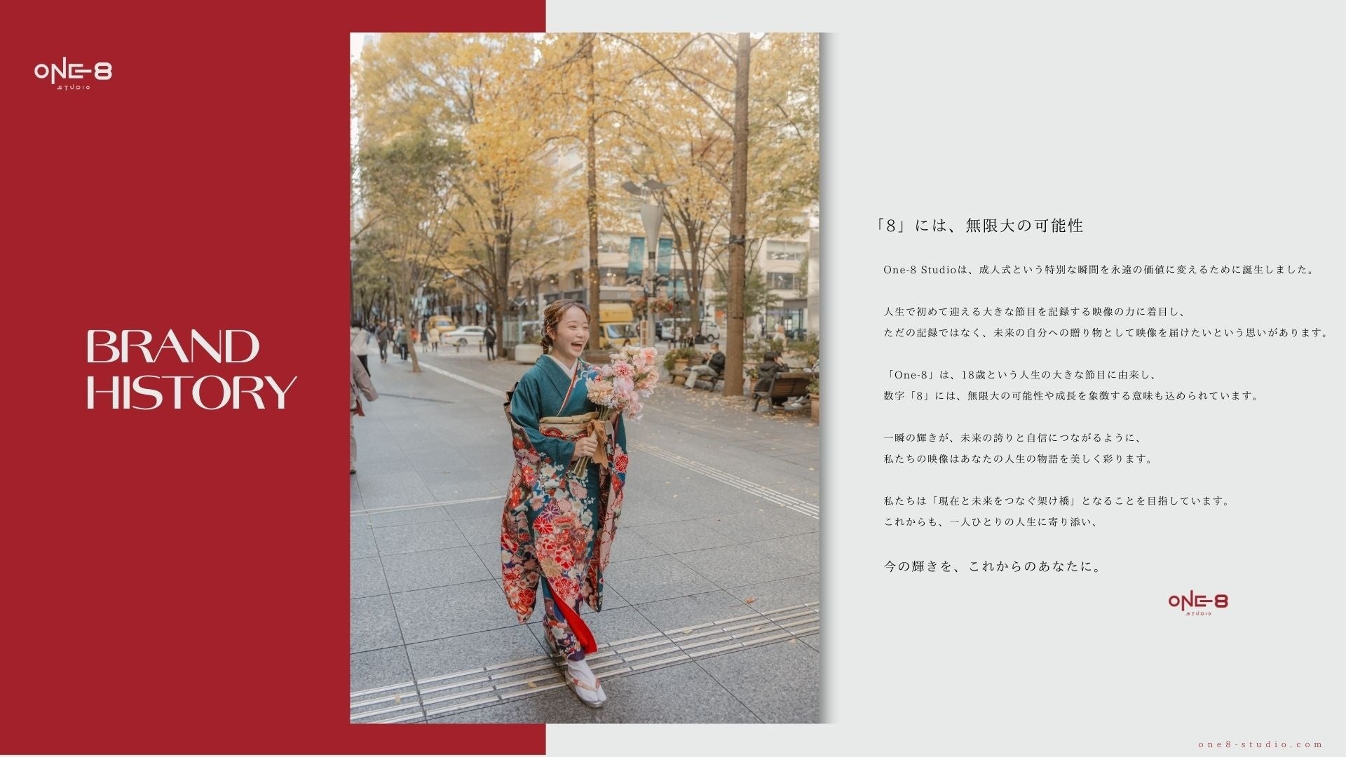 「One-8 Studio」は、18歳=“8”に込められた無限大の可能性を象徴とし、他にはない前撮り体験を提供します。