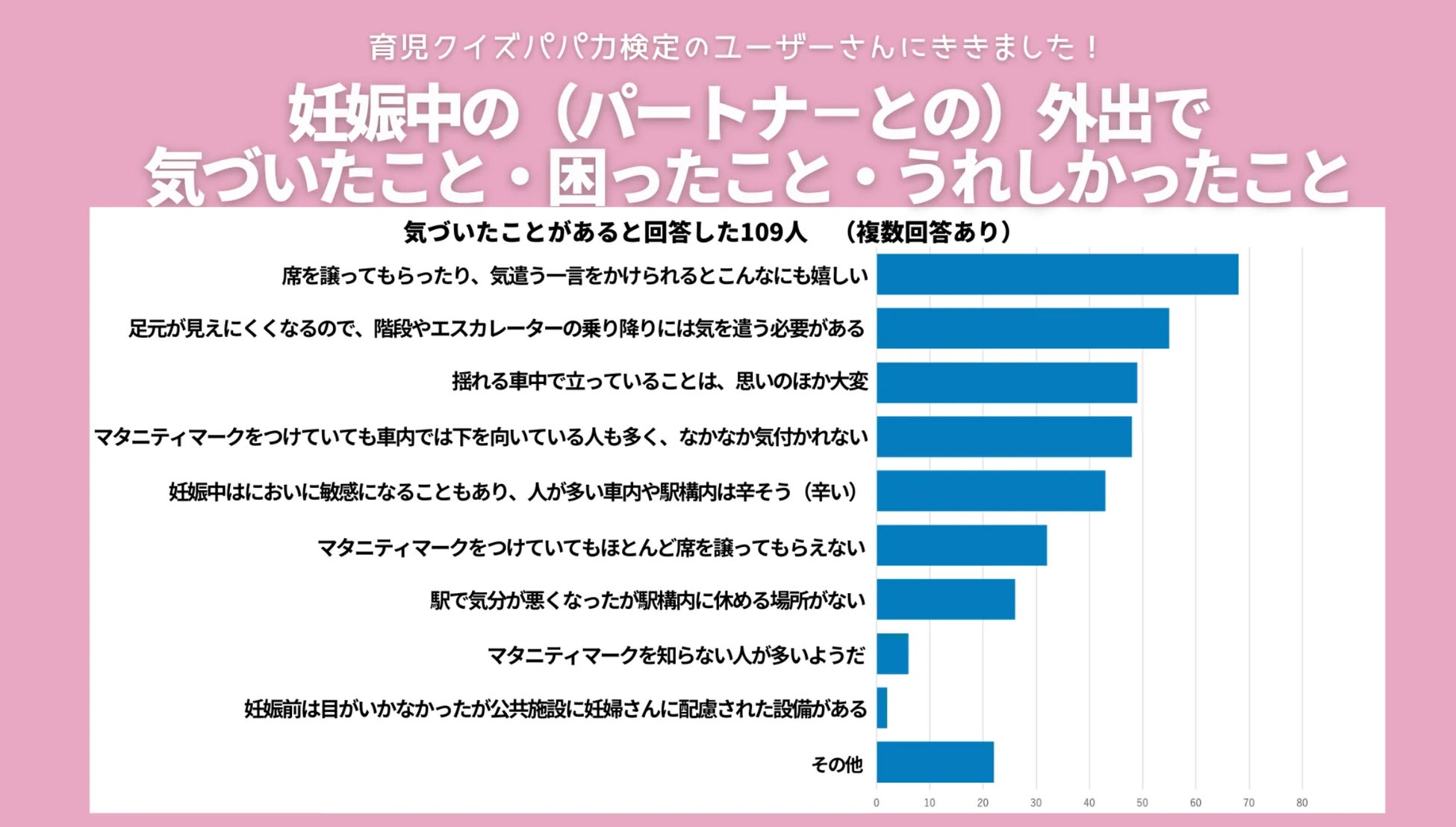 ■「妊娠中(のパートナーと)外出していて気づいたことや困ったこと、嬉しかったことがある」と回答した109名の方に、詳細を伺いました。