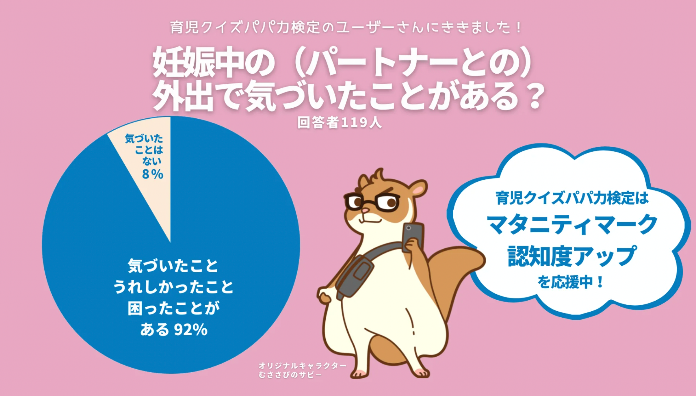 育児に役立つ知識を楽しいクイズ形式で提供しパパの育児を応援している「育児クイズパパ力検定」は、妊娠中の外出におけるアンケートを実施し、エピソードなどを募集。119名の方から回答がありました