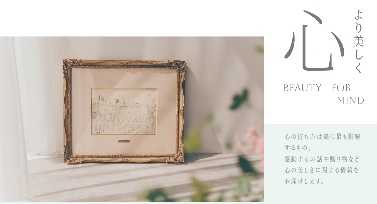 季節のフラワーギフトアイデアや、美しく年齢を重ねている素敵なゲストとエルビュー株式会社代表取締役社長冨宅とのビューティートークなど、読むと感動して心豊かになる「心」に関するコンテンツ。