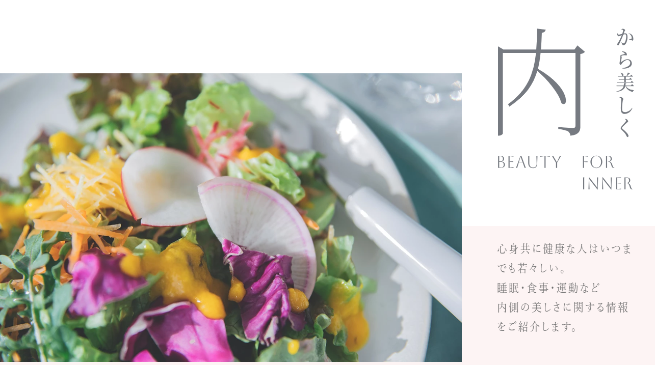 本来の美しさとは、外見、健康などの内側、心の持ち方など、「外・内・心」の様々な要素が影響するもの。