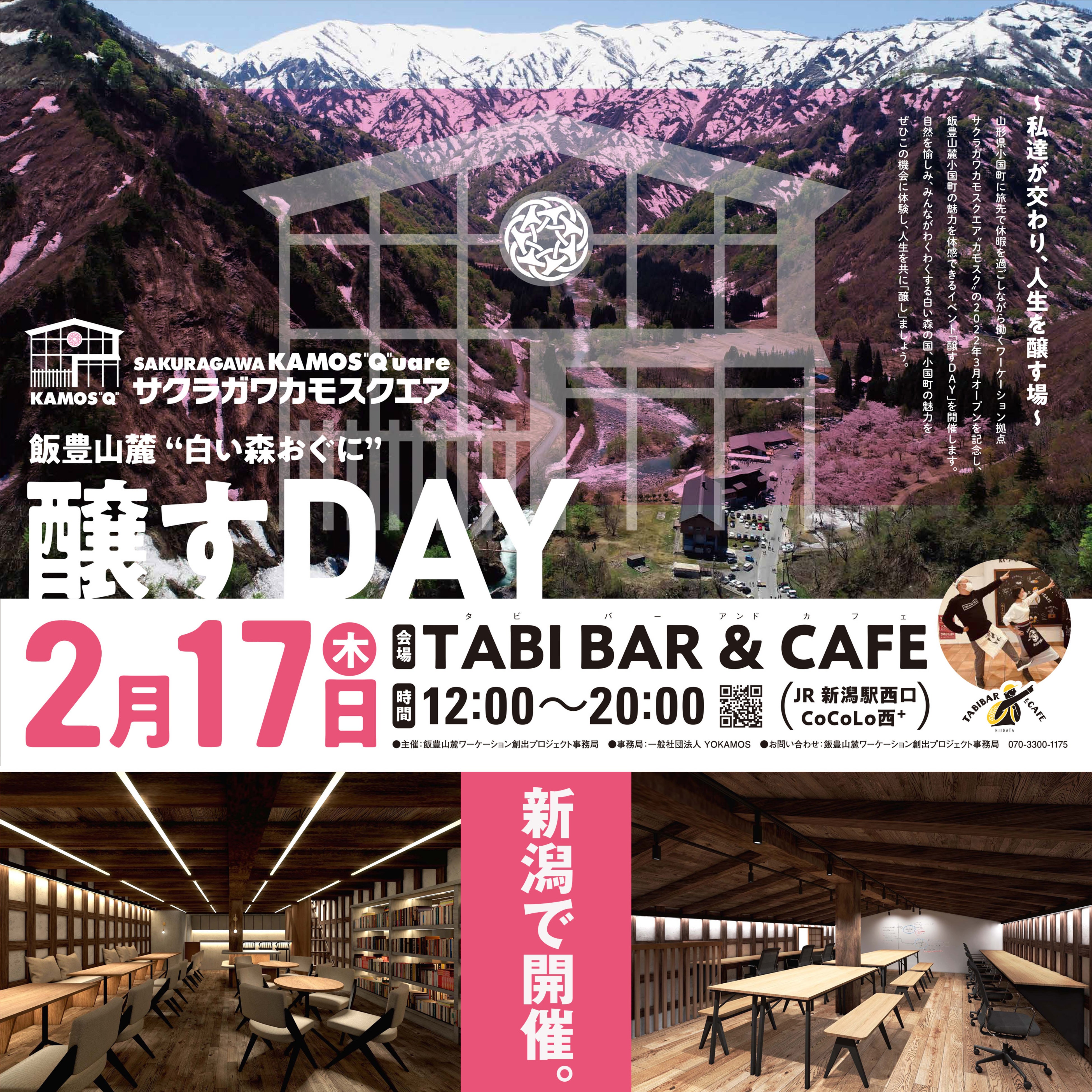 「TABIBAR(新潟駅)を、飯豊山麓「白い森おぐに」が「醸すDAY!」イベント