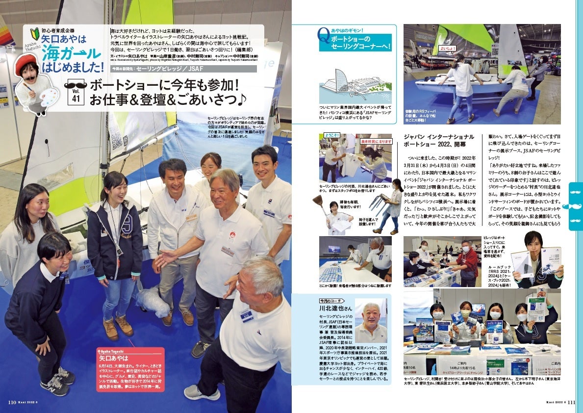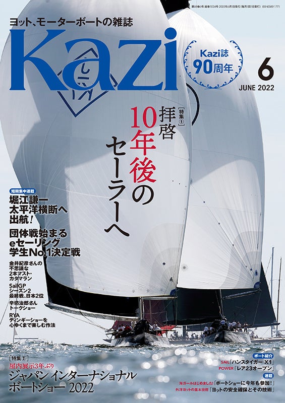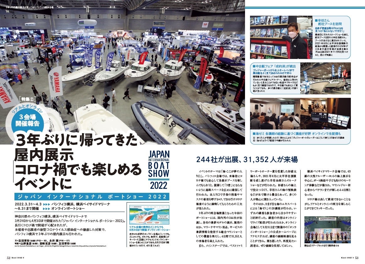 ヨット、モーターボートの雑誌『Kazi』2022年6月号では、「ジャパン インターナショナル ボートショー 2022」関連の記事を、合計18ページで紹介してます。