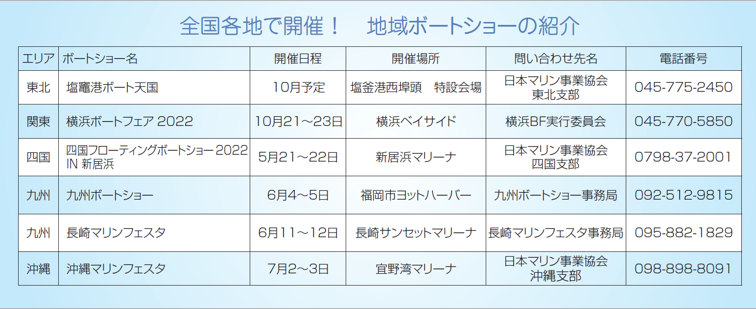 【夏から秋に向けて各地で開催!!地域ボートショーの日程】
