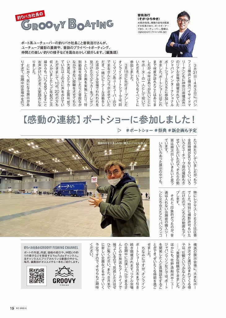 また連載「釣りバカ社長のGROOVY BOATING」でもボートショーをピックアップ。さまざまな方向から楽しめる今年のボートショーの魅力をアピールしています。