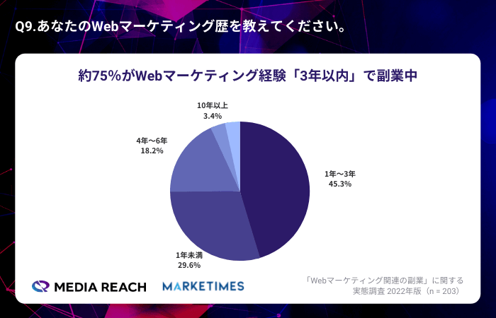 ・約75%がWebマーケティング歴「3年以内」で副業中