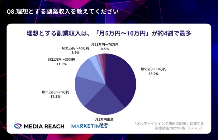 ・理想とするWebマーケティング関連の副業収入は「月5万円~10万円」が38.9%で最多