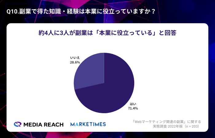 ■71.4%がWebマーケティング関連の副業が「本業に役立っている」と回答