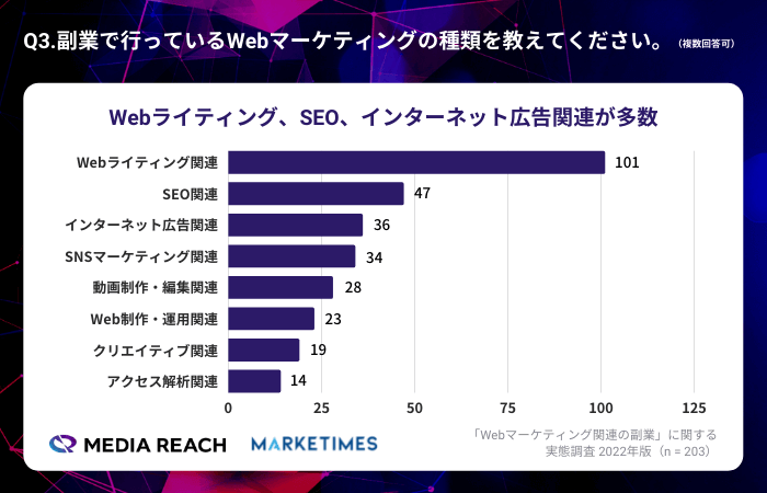 ■Webマーケティング関連の副業は「Webライティング」「SEO」「インターネット広告」関連が最多