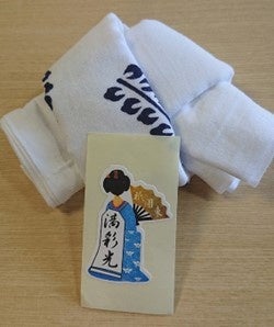 (祇園東舞妓さん『満彩光(まさてる)』さんサイン入り手ぬぐいと千社札付き)