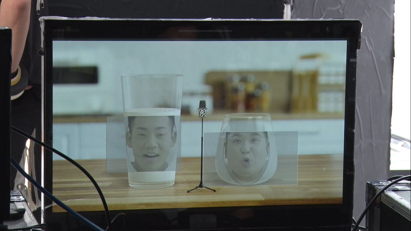 内海さん:「あんまり動くと牛乳がこぼれます!」とスタッフさんに言われて、普段の漫才とは違う動きが難しか