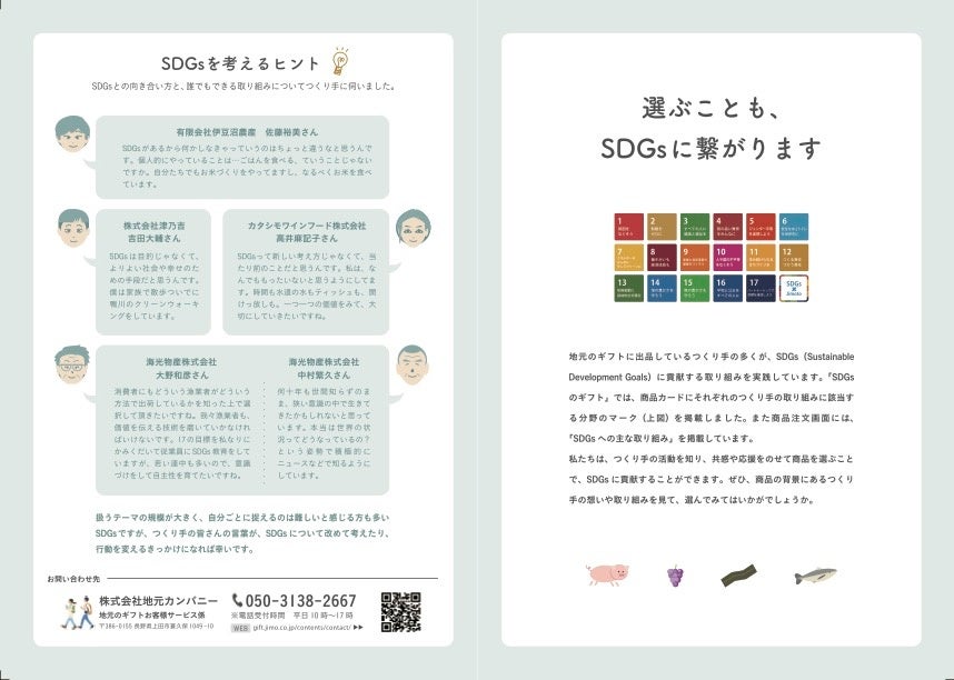 日本各地の地域産品を取り扱うカタログギフト「地元のギフト」を運営する株式会社地元カンパニー(本社:長野県上田市、代表取締役:児玉光史、以下地元カンパニー)が、2022年5月30日より販売を開始した「SDGsのギフト」。地元カンパニーが取引のある全国各地の約1000のつくり手にSDGsの取り組みについてアンケートを実施し、回答があったつくり手の中から、約70商品を掲載した地域産品のカタログギフトです。