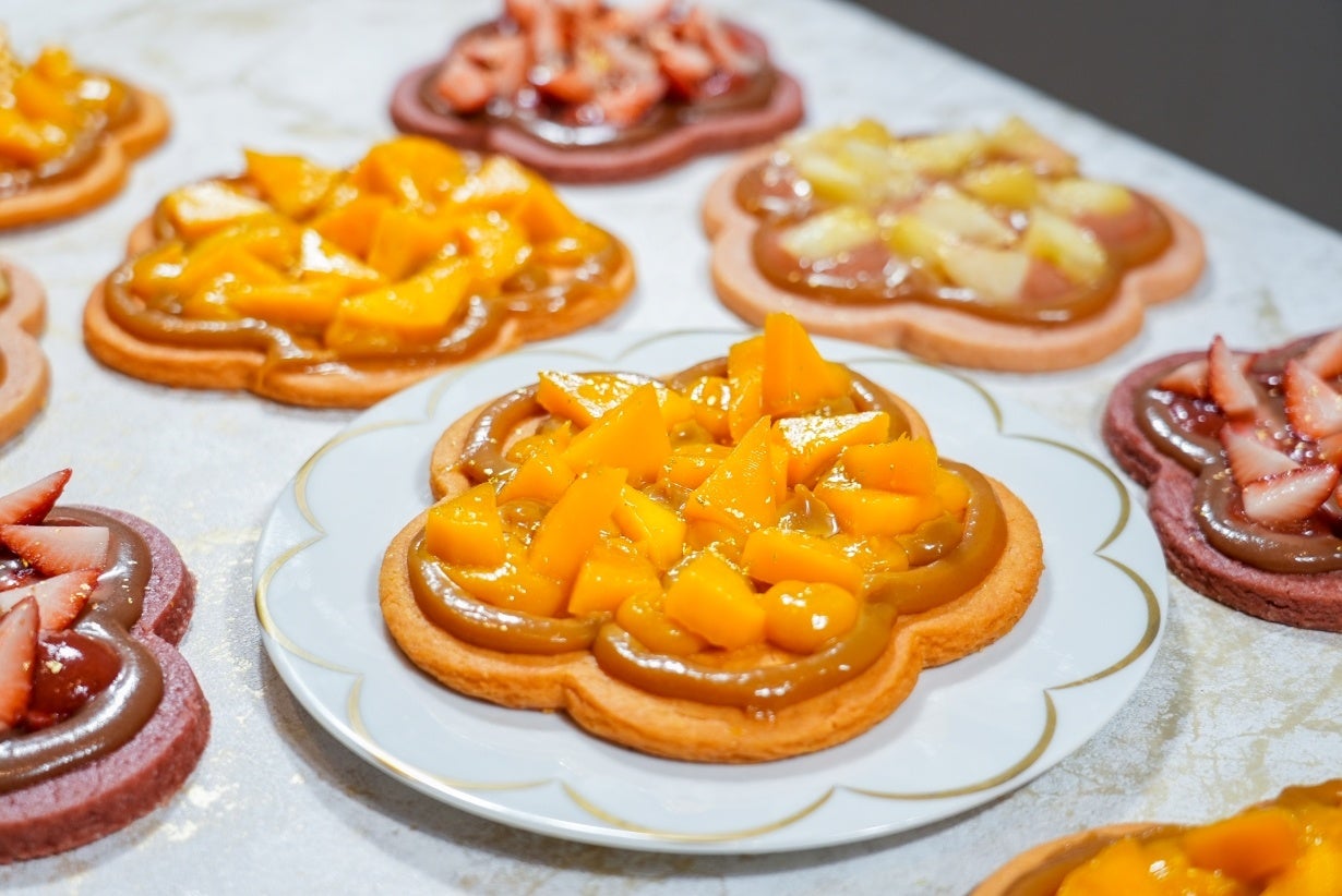 今回、販売するクッキーは、6種。フルーツクッキーは、国産マンゴ、国産桃、国産イチゴの3種。日本の食材を愛するシャルルが国産フルーツにこだわって素材を選び抜き、パリのミシュラン三ツ星のジョエル・ロブション氏などの元で修業して培った卓越したフレンチの技術で生み出した、人生未体験の最高のクッキー。残り3種は、チョコレート、ヘーゼルナッツ、抹茶&あんこという王道クッキー。しかしながら、シャルルの手にかかれば、誰もが「こんなの初めて」と思うようなクッキーとなる。フランスの高級ヴァローナチョコレートを贅沢に使用して高級な香りと味のハーモニーに仕上げたチョコレートクッキー、香ばしいヘーゼルナッツと塩キャラメルとバニラの香るヘーゼルナッツクッキー、濃厚な抹茶と丹波産のあんこをクリスピーに仕上げた抹茶&あんこクッキー、驚きの連続の食体験をもたらす。