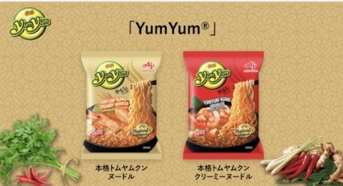 タイ⽣まれの即席麺・トムヤムクンフレーバーの「Yum Yum®」(ヤムヤム)。味の素グループがタイで⽣産している製品で、世界中のいろいろな国で愛されている、ファンの多いブランド!現地のレシピを採⽤していて、「レモングラス」、「ガランガル」、「バイマックルー」、「タマリンド」など、本格的なスパイスとハーブがたくさん⼊っているからこその絶妙な味わいが魅⼒です。東南アジアのインスタントラーメンはスナックとして⾷べられることも多く、細麺が多いのですが、「Yum Yum®」はタイで新しく開発したモチモチ⾷感の太麺が特⻑です。