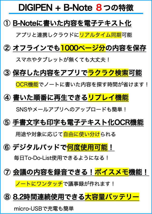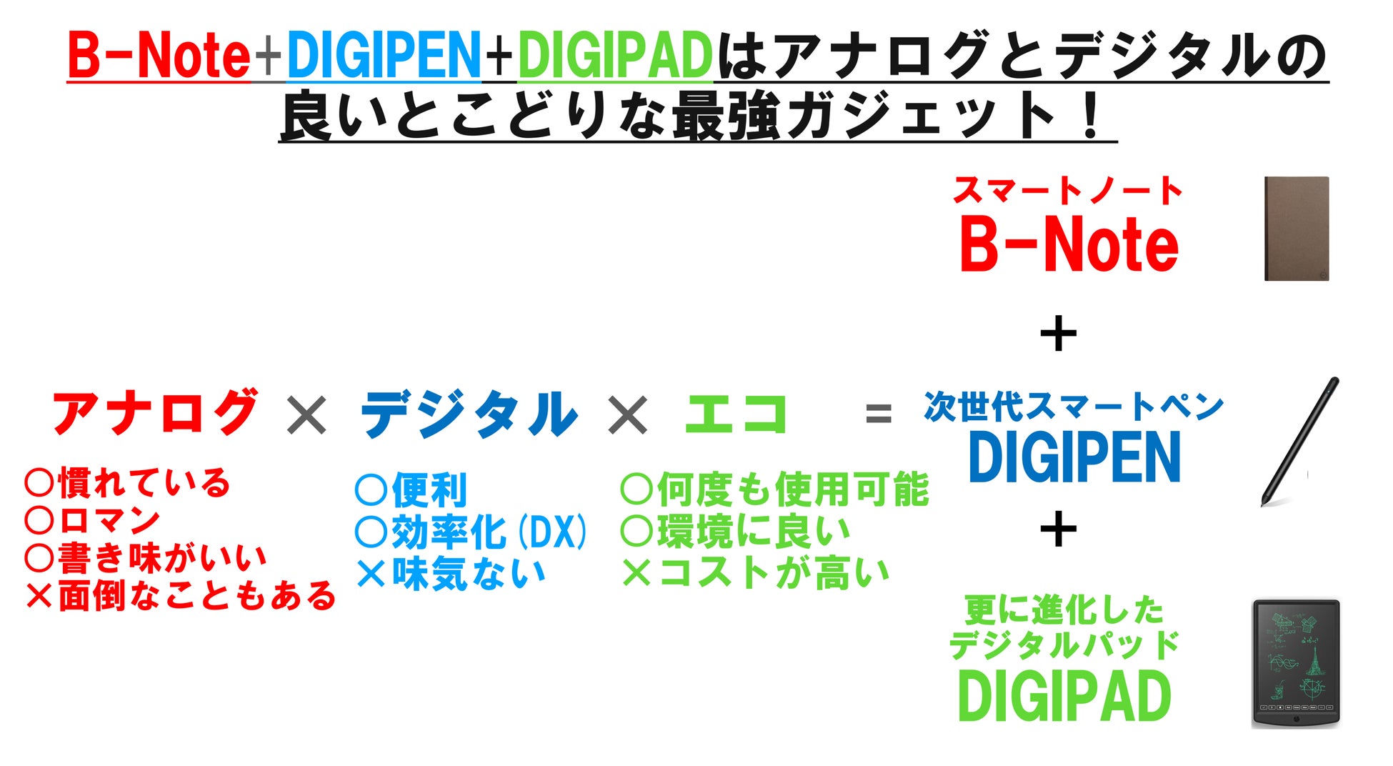 ①B-NOTEとDIGIPADに書いた内容を瞬時にデジタル化