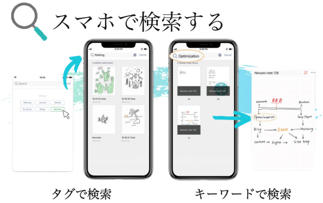 タグ検索と、キーワード検索の2通りの検索が可能なので、簡単に過去のノートを探せます!