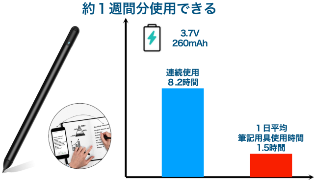 DIGIPENは約2.0時間の充電で8.2時間の連続使用が可能。