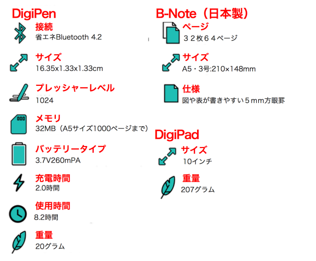 A5サイズの専用開発"B-Note"または10インチのDIGIPADにDIGIPENで書いた内容を、専用アプリとBluetooth連携するだけで簡単に電子化し、クラウドに保存可能です。