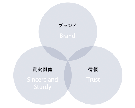 コーポレートカラーは、日本で古来より武家を中心に好まれた「藍染」に着想を得た濃紺「勝色」を取り入れました。また、クライアント、消費者、ECプラットフォームの三方に質実剛健・信頼を重視して価値を提供していく意志を新CIに込めました。