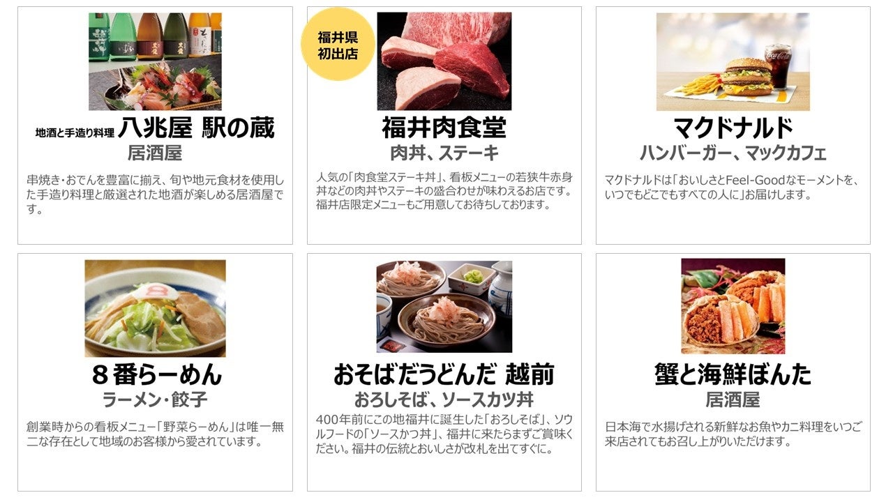 ・今後新たに出店店舗が追加となった場合は、くるふ福井駅HPにて順次公開していきます。