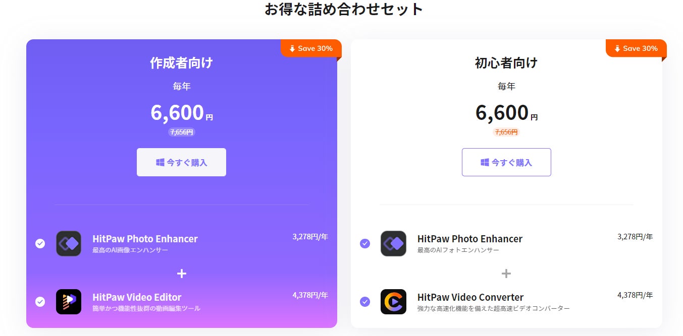 HitPaw Photo Enhancer - 1 Year/1 PC + HitPaw Video Converter - 1 Year/1 PC=3278+4378=6,600(オリジナル価格7,656 )