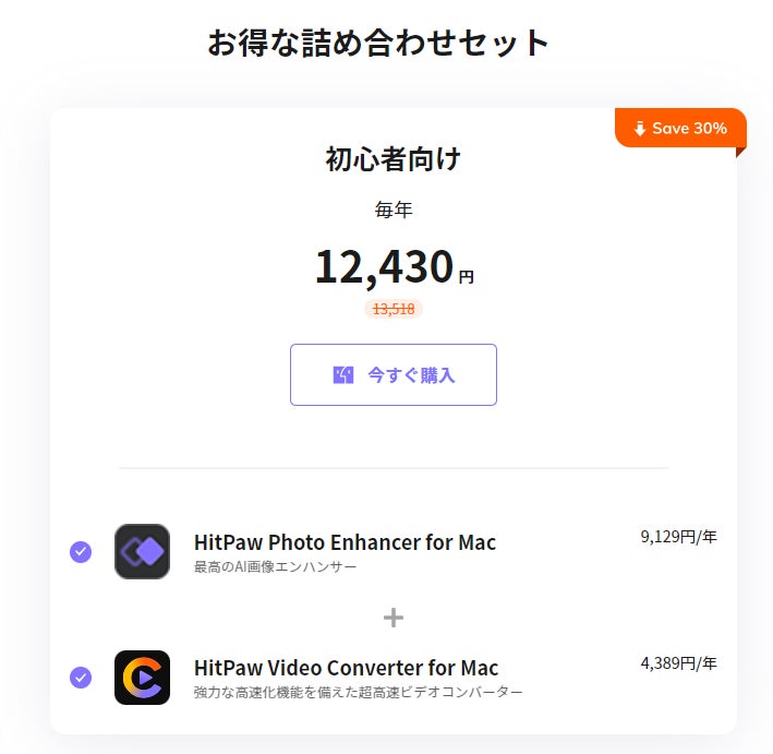 HitPaw Photo Enhancer for Mac - 1 Year/1 Mac + HitPaw Video Converter for Mac - 1 Year/1 Mac=9129+4389=12,430(オリジナル価格13,518)