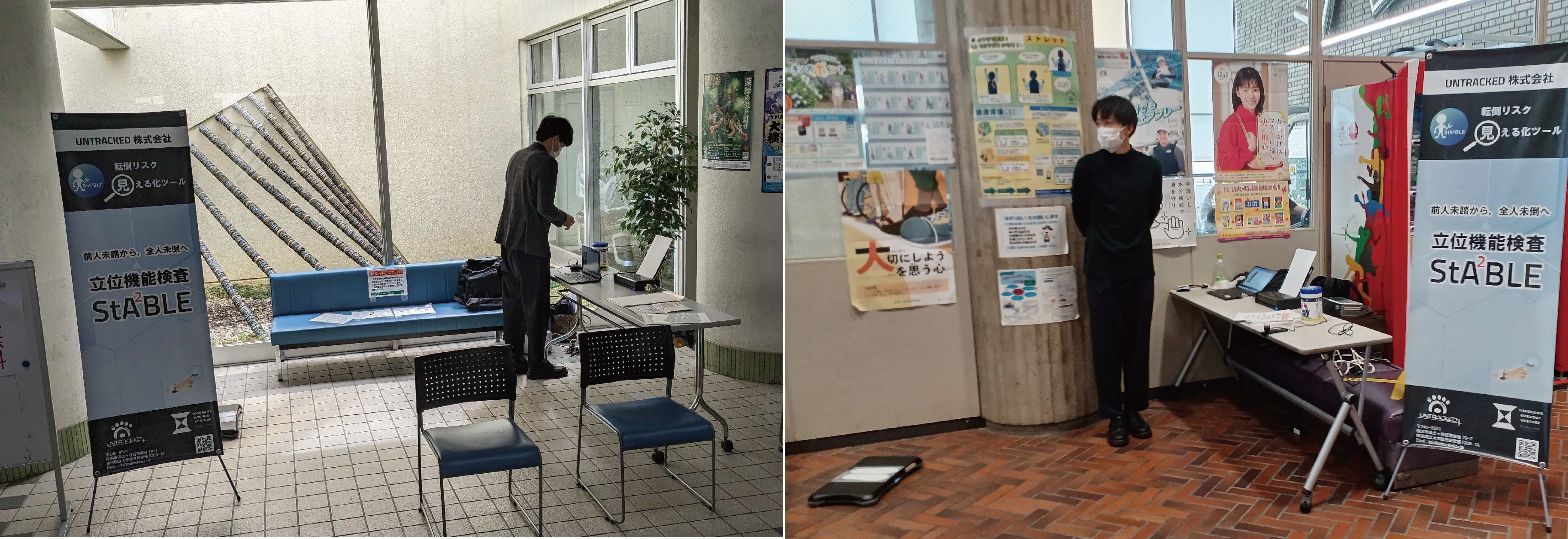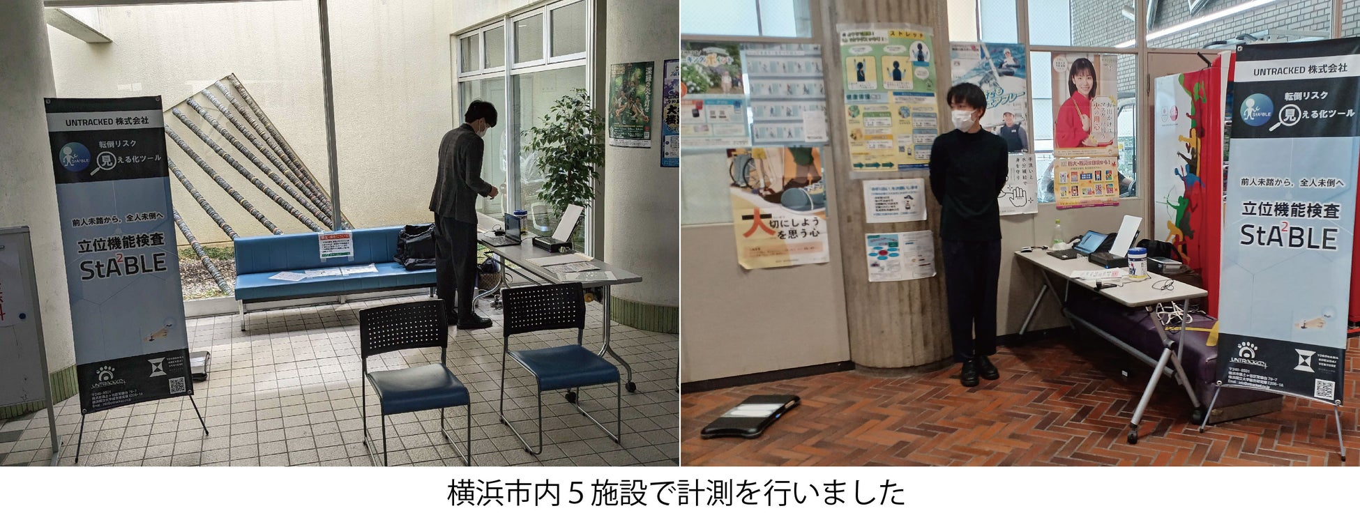 2022年12月にUNTRACKEDの「StA²BLE」は、横浜市が実施する「スタートアップ社会実装推進事業トライアル導入コース*2」に採択され、横浜市内のスポーツセンター5施設、横浜市経済局、横浜市シルバー人材センターに当社開発製品である「転倒リスク検査装置 STA²BLE」を導入し、2023年1~3月にかけて計測イベントを実施しました。
