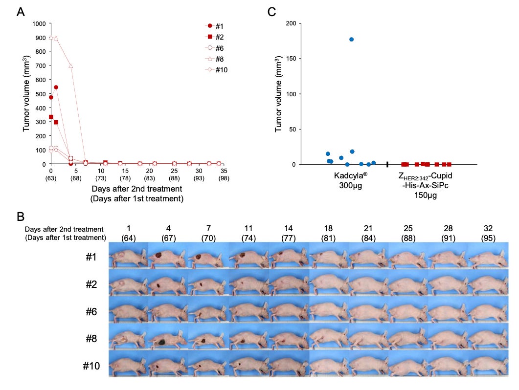 今回の発表されたデータは、Savid Cupid-Psyche AMDCプラットフォームが、複数のがん標的に対する治療薬を迅速かつ安定的・高収率に製造できることに加え、Ax-SiPcの高い治療効果が実証できたものと考えられます。