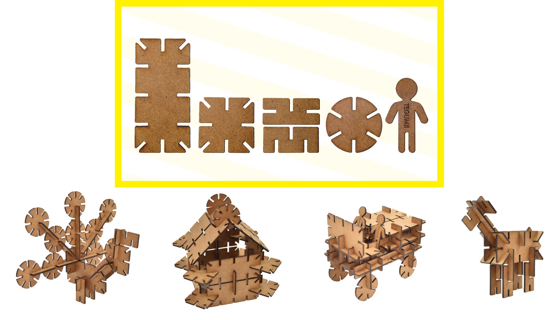 テグミーはシンプルな5種類のパーツから構成されます。それぞれのパーツには多くの役割があり、1つのパーツだけでも平面を伸ばしたり、角度をつけたりできます。さらには互換性があるため、アイデア次第で無限大の創造を楽しめます。