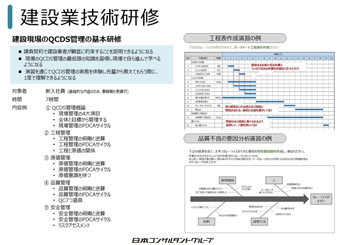 そこで本セミナーでは、建設業に特化した研修を行うニッコンの中で、毎年新人・若手社員を対象に最も多く実施される、QCDS管理基本研修の内容をご紹介します。