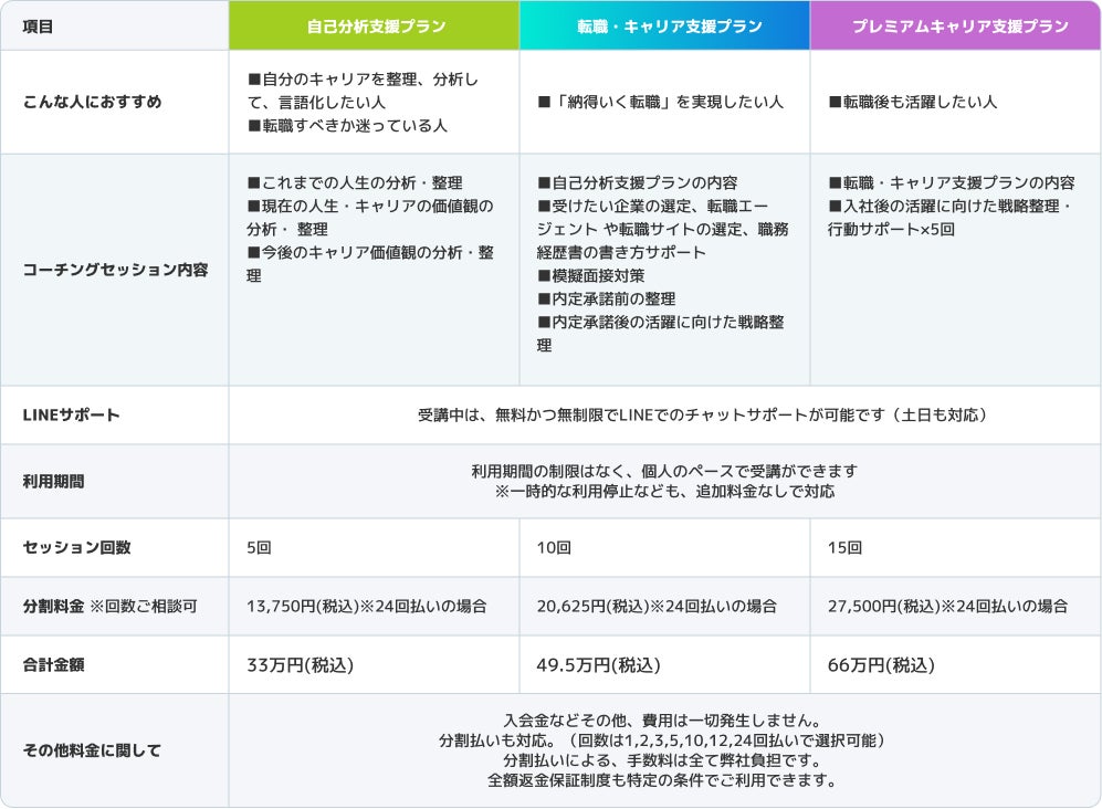 - キャリアアップコーチングの提供プラン