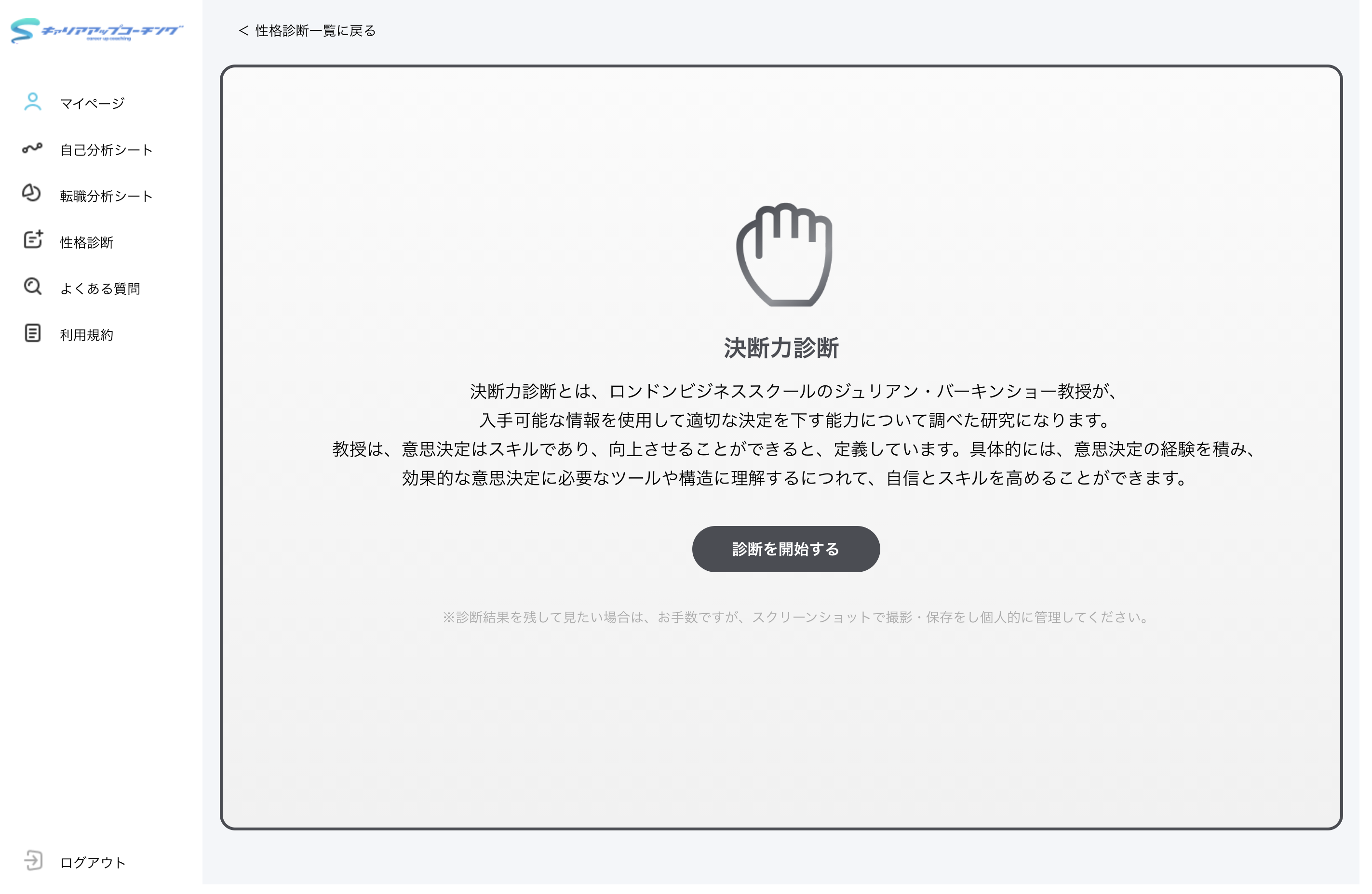 ※その人の意思決定力を判定する意思決定診断や、転職に特化した意思決定ツールを用います。