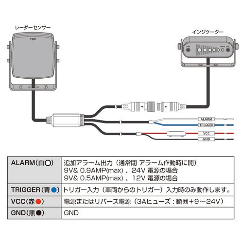 レーダーセンサーとインジケーターを組み合わせ、5段階の接近警報を提供します。