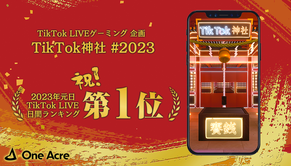 ワンエーカー、2023年元日のTikTok LIVE日間ランキング1位獲得の『TikTok神社』の企画開発を担当