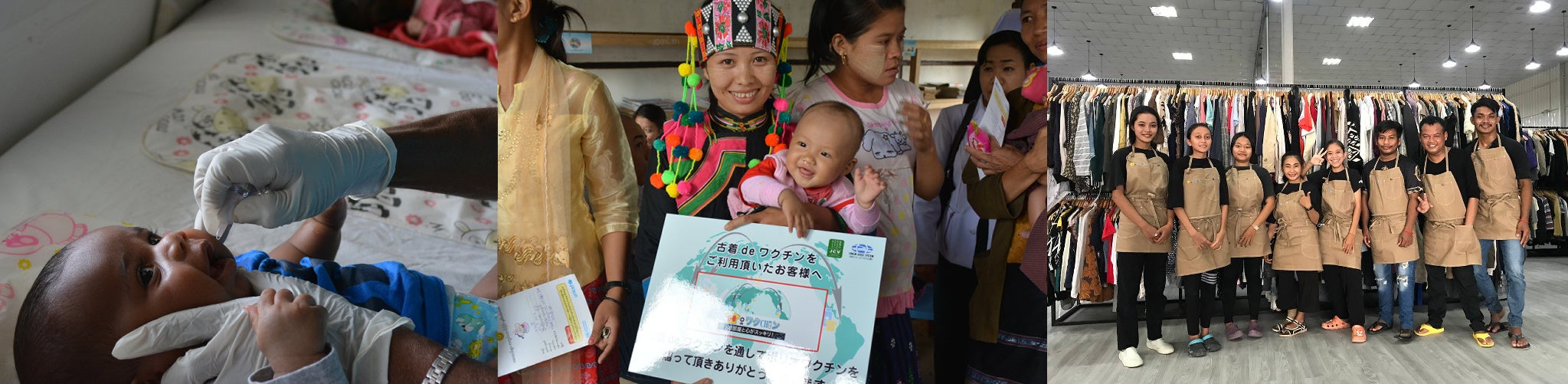 ご家庭に眠る捨てるには忍びない衣類等を「古着deワクチン」を利用してお片づけいただくと、認定NPO法人 世界の子どもにワクチンを 日本委員会を通じて、5人分のポリオワクチンがラオスやバヌアツなどの子どもたちに届けられます。これまで個人・団体・法人を問わずたくさんの方にご利用いただき、累計390万人以上の子どもたちの命を救うことができました。(※2022年2月28日時点/関連事業含む実績)