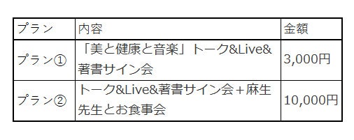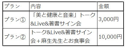 プラン①「美と健康と音楽」トーク&Live&著書サイン会 3,000円