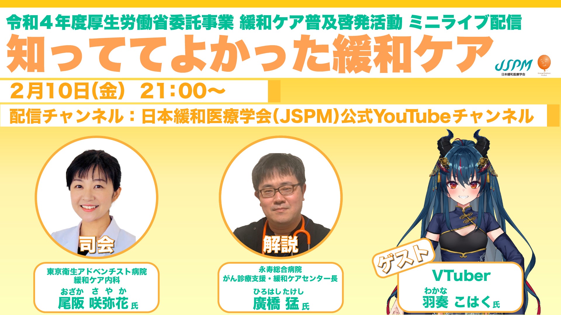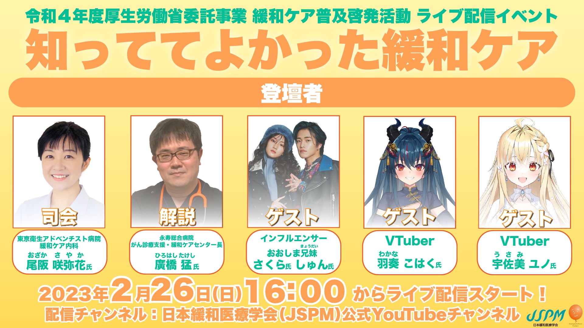 「令和4年度厚生労働省委託事業 緩和ケア普及啓発活動 ミニライブ配信#2 知っててよかった緩和ケア」