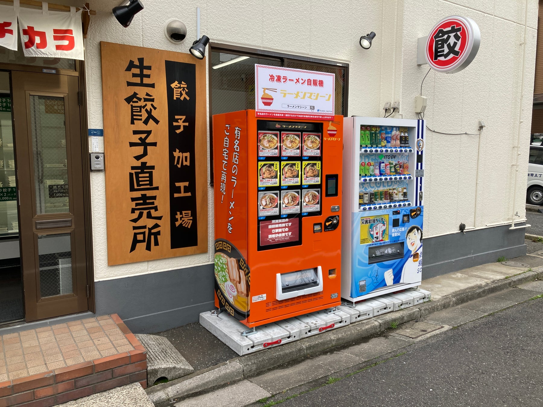 『ラーメンマシーン細田店』は餃子のチカラ店舗前の設置となっており、24時間お買い求め頂けます。