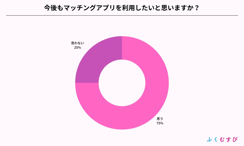 ・マッチングアプリ利用者の75%が、今後も継続して利用したいと回答しました。