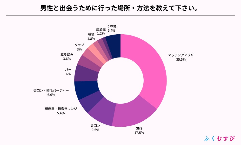 ・最も多かった出会い方は、1位マッチングアプリ、2位SNSとなりました。