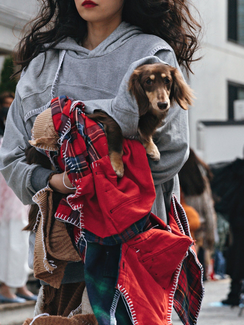 これまで人間主導の世の中で、人間のための服づくりをずっとしてきましたが、犬という存在を通して、改めて着ることの愛おしさは人間だけのものではないと感じました。穴の開いたスウェットは人間にとっては着心地がよく、犬にとっては呼吸がしやすくなるように、「人間と犬との共生」というファッションを超えた地球規模のテーマから、より新しいファッションを生み出せた気がします。