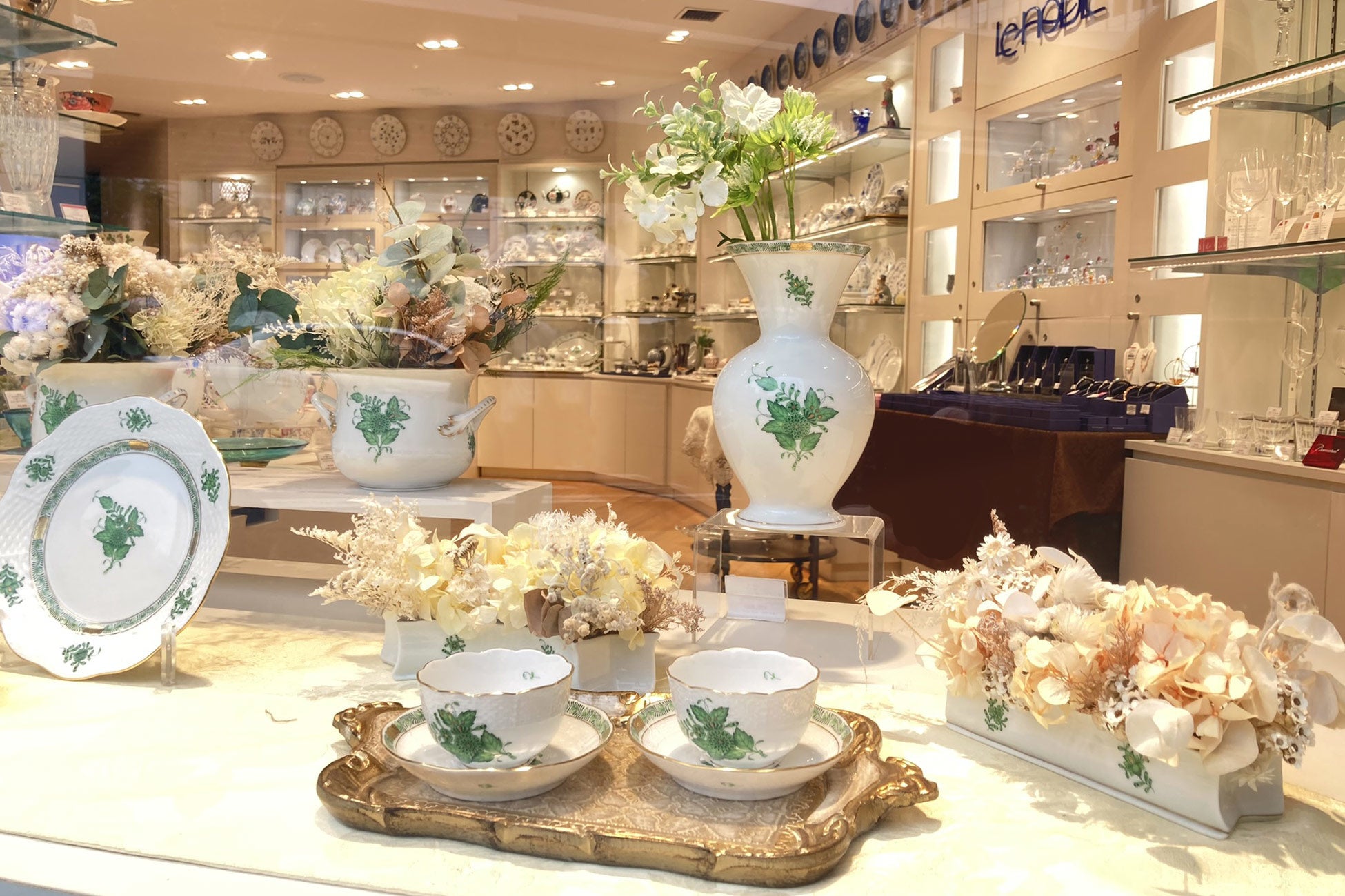 取り扱いブランド例:ウェッジウッド、ヘレンド、マイセン、バカラ、ロイヤルコペンハーゲン等