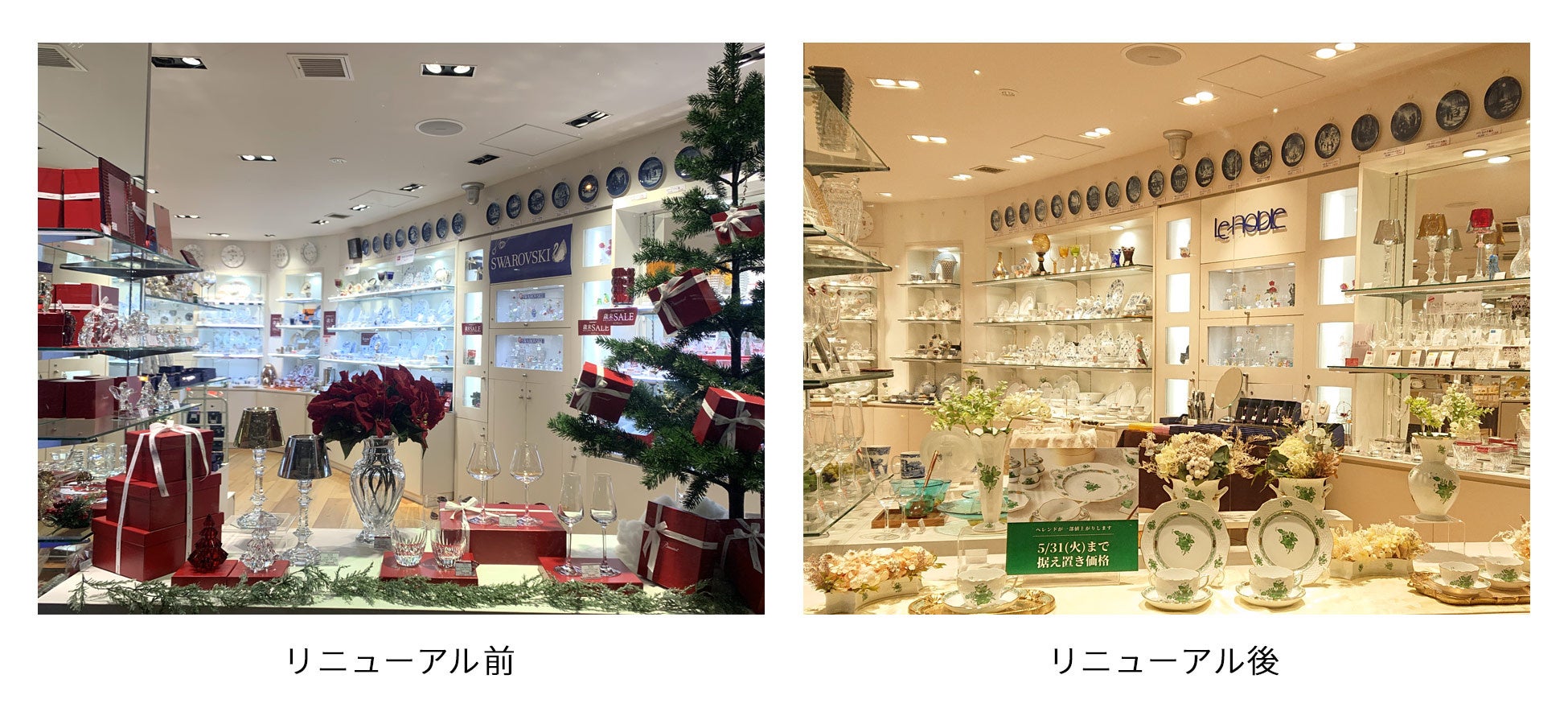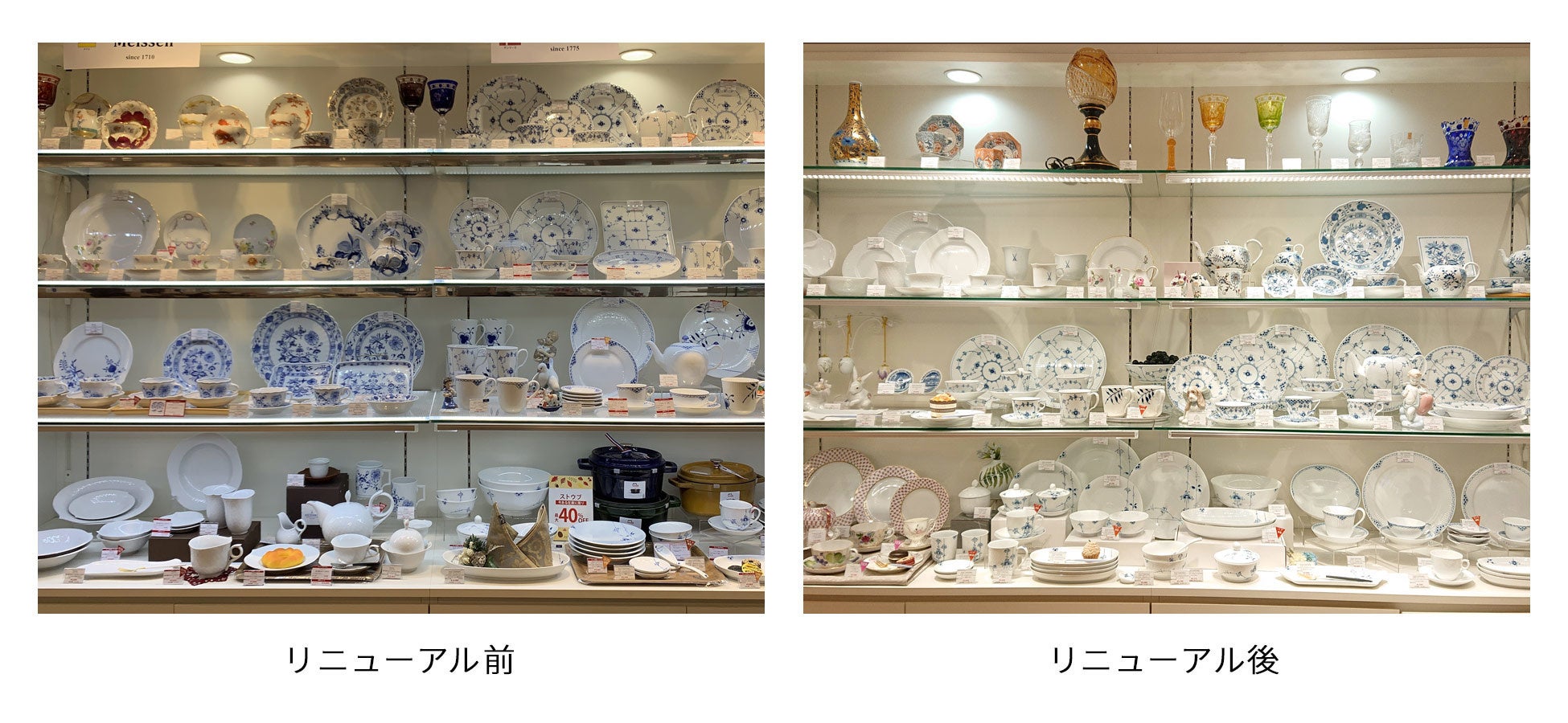 輸⼊洋⾷器専⾨店「ル・ノーブル銀座店」CO2の継続的な削減を目指し店内をLED照明へ変更。実際の使用感が分かりやすい空間に。