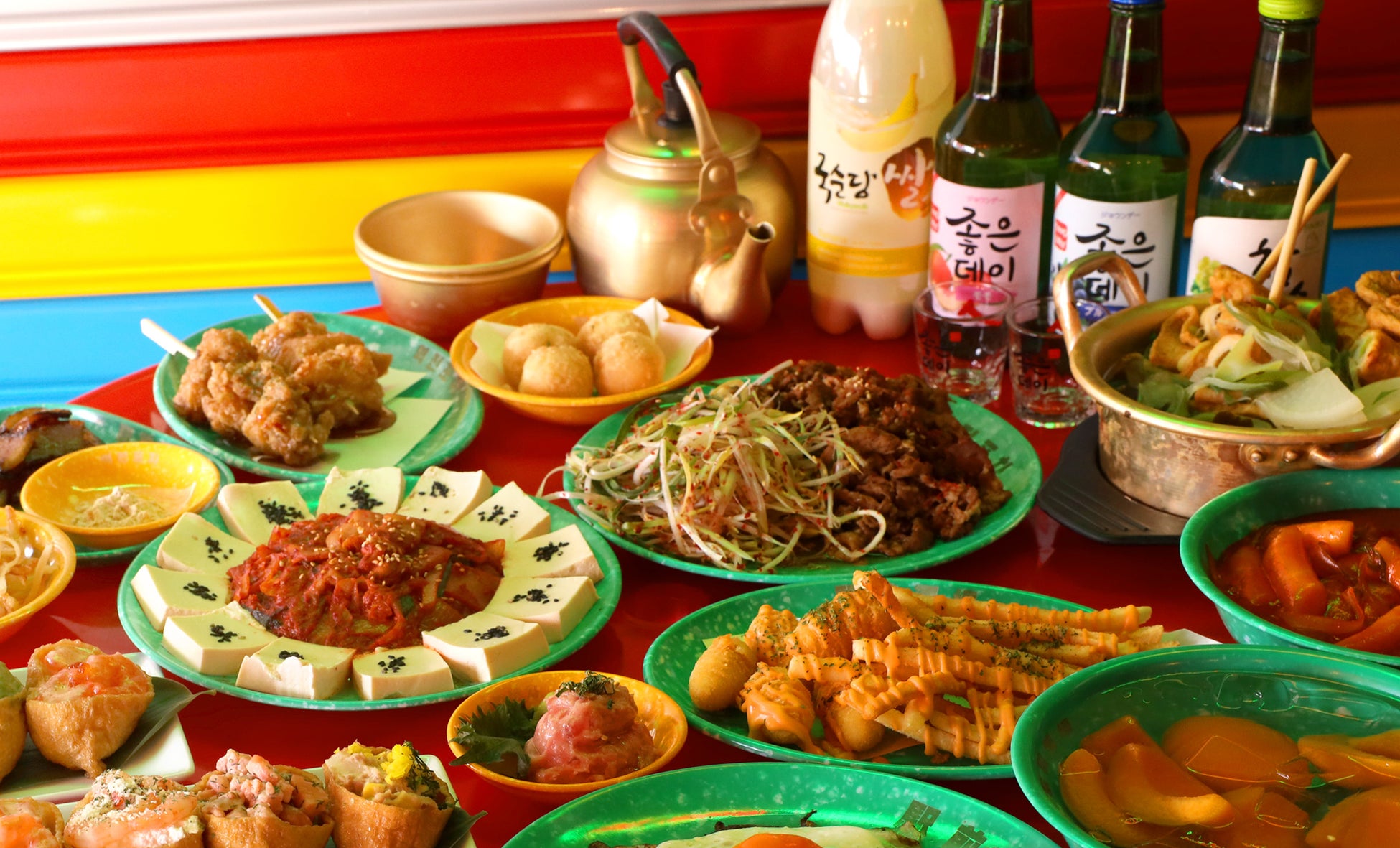 韓国の屋台の雰囲気を感じられると共に、韓国屋台のメニューも50種類以上準備しました。韓国チキンとチヂミはもちろん、焼きプルコギ、ホルモン鍋などなど最近韓国で流行っているメニューもいっぱい!韓国料理はもちろん、日本のおつまみもメニューに用意しております。