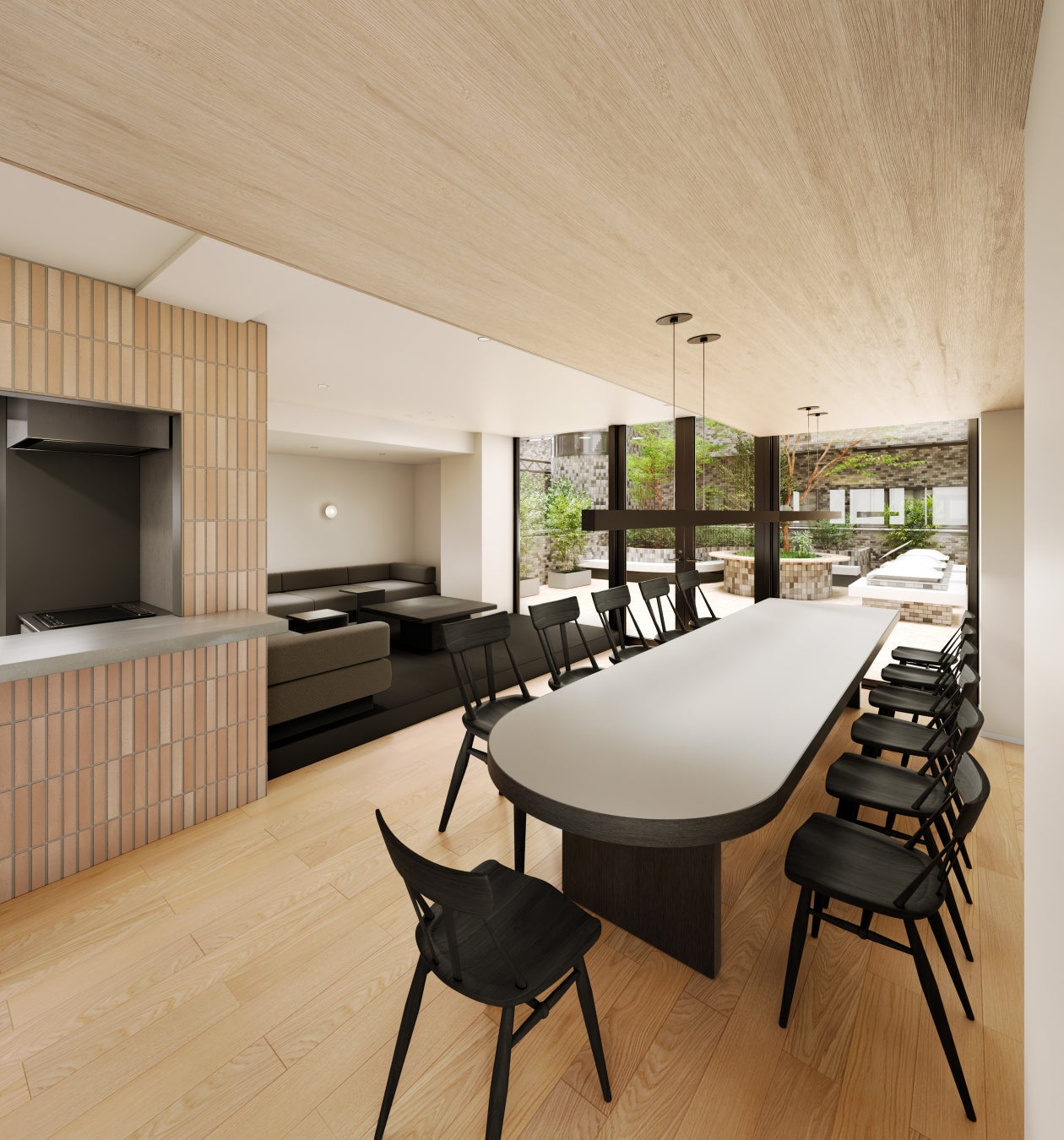 住人同士が自然につながるラウンジ、光が差し込むLDK、爽やかな風が抜けるテラスなど、日常と非日常の境界にあるような共用空間を設置。